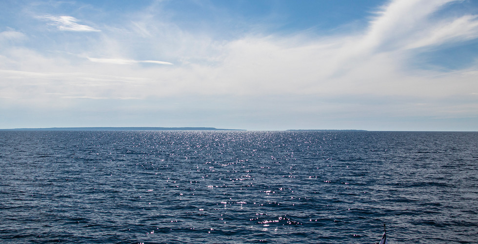 June 26, 2018 (Tuesday): Here we are moving into Lake Huron on our way to the Straights of Mackinac and Lake Michigan. It is a beautiful day for cruising the Lake. Slight winds, calm seas and moderate temperatures. As we move into Lake Huron proper we pass port to port the ferry to Tobermory and cruise West about 5 miles off northern shore of Lake Huron and make good time. It is such a perfect day for cruising we decide not to stop early and push on to Drummond Island where we will check in with US customs. At 8:12 pm, 475.2, we pass into US waters for the first time in over 3 weeks. Since it stays light until 9:30 pm and there is a full moon tonight we keep going to Drummond Island. Our destination Drummond Island Yacht Haven on the north side of the Island. For those who are not familiar with DI it is a very large island. To get to Yacht Haven we pass through De Tour Passage north and then east through smaller islands to the marina. The passage and channel are not marked very well and since we arrive at the Passage about 11:00 pm, we cruise very slowly and navigate by chart and GPS marking unlighted buoys with spot light. No real problem but requires undivided attention. Reach Yacht Haven at 12:00 am, 478.7, and tie up at a slip at then end of one of the docks. Very tired we secure the boat and hit the sack. A long successful day.